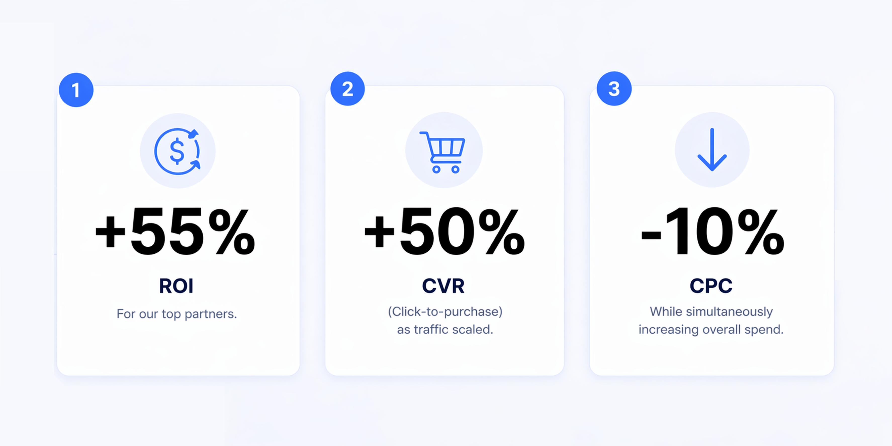 - +50% CVR (Click-to-Purchase) as traffic scaled.